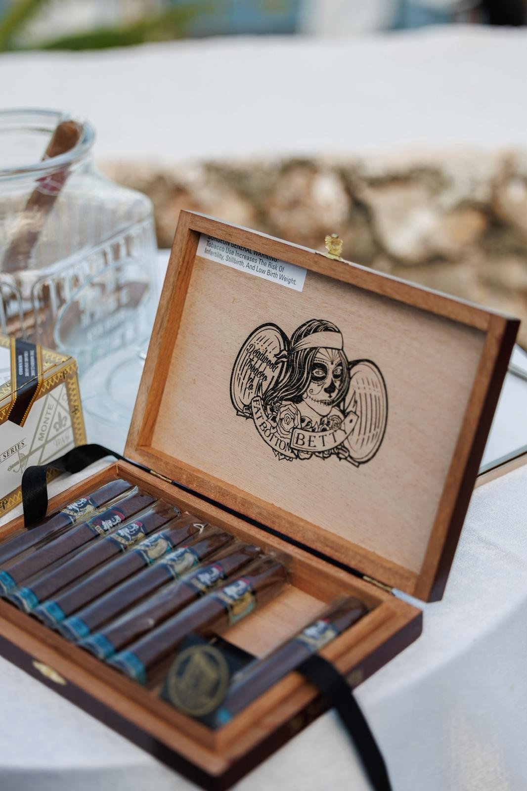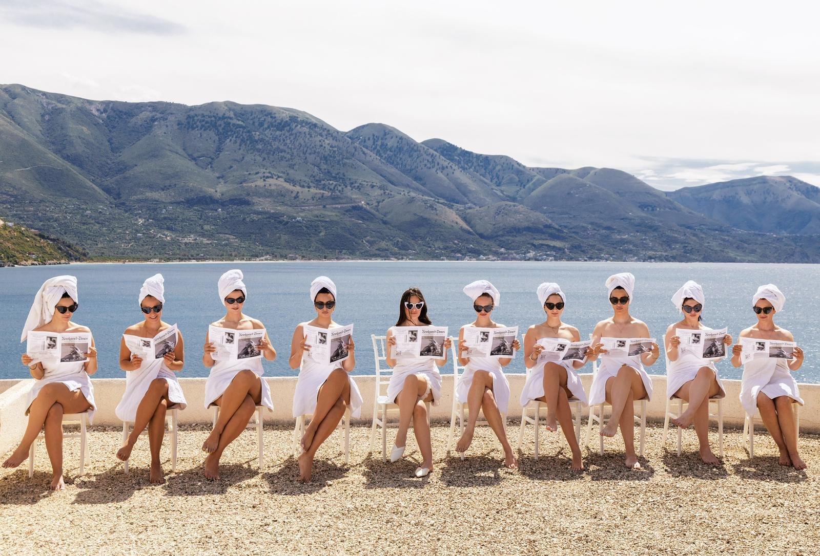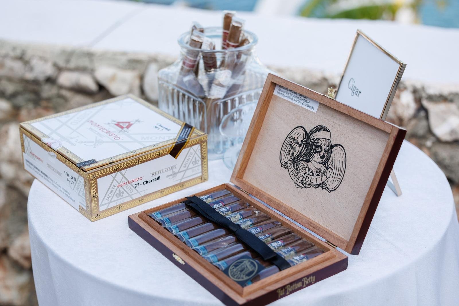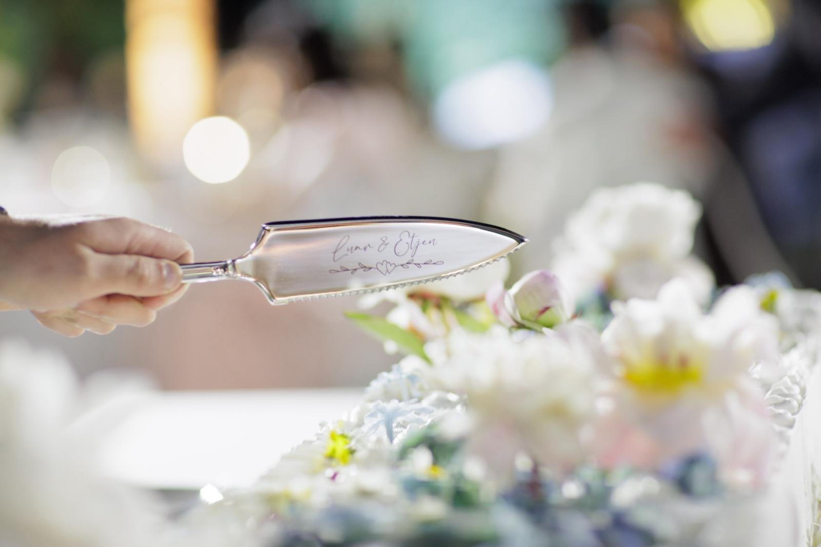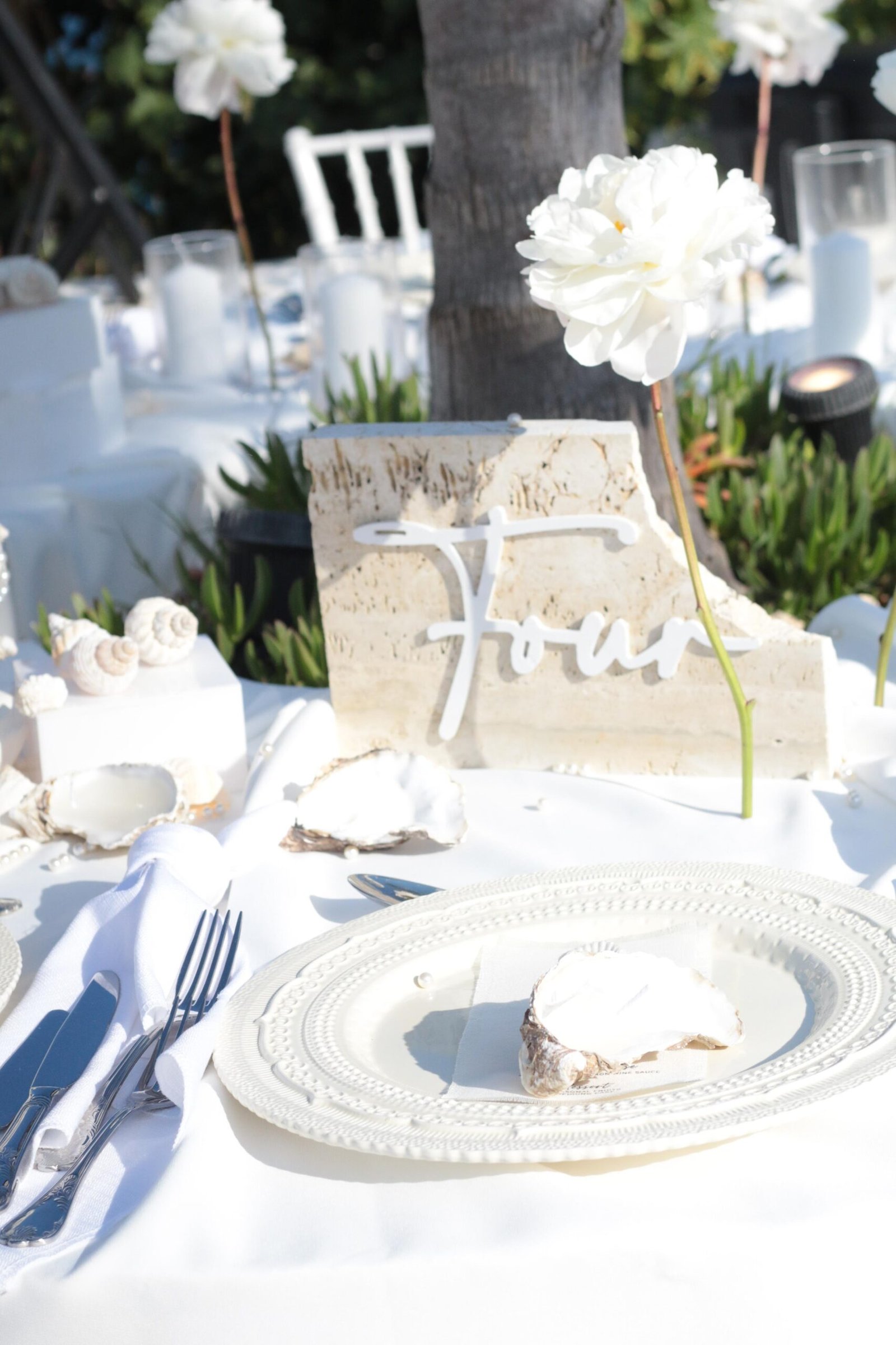 We created a serene atmosphere with an all-white theme, evident in the guest book, florals, and reception setup. The personalized Vodka Bar and unique menu, featuring dishes like Fileto Levreku (Sea Bass Fillet), added bespoke touches. From the personalized cake cutter to the gorgeous seaside welcome sign, every detail ensured their wedding was flawlessly executed and truly unforgettable.